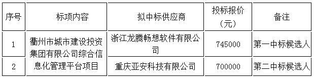 衢州市城市建設(shè)投資集團(tuán)有限公司綜合信息化管理平臺(tái)項(xiàng)目的中標(biāo)結(jié)果公告