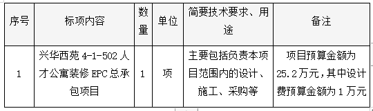 興華西苑4-1-502人才公寓裝修EPC總承包項目競爭性磋商公告