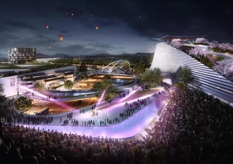 外觀既保留了傳統(tǒng)東方建筑“白墻黛瓦”、“前坊”、“望樓”等元素,又融入強(qiáng)烈未來感的建筑特征。