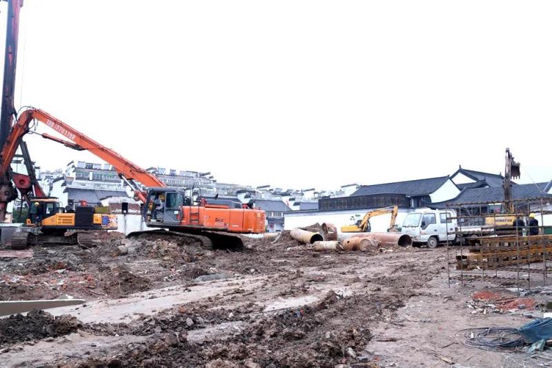 今天,在衢州古城雙修十大項目之一水亭門歷史文化街區(qū)二期補(bǔ)白新建工程——皂木巷片區(qū)新建與修繕工程工地現(xiàn)場,30余名工人正在緊張施工作業(yè),挖掘機(jī)轟鳴作響。