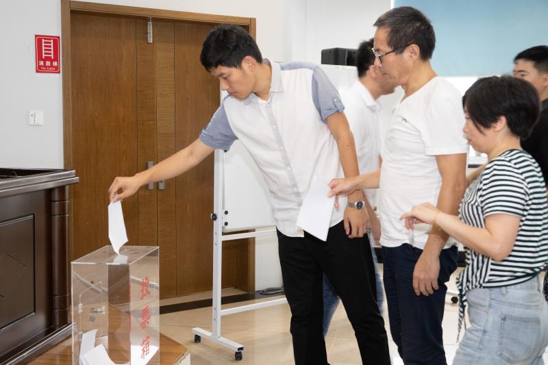 隨后,以無記名投票方式,選舉產(chǎn)生了第一屆工會委員會委員,王堅威當選工會主席。