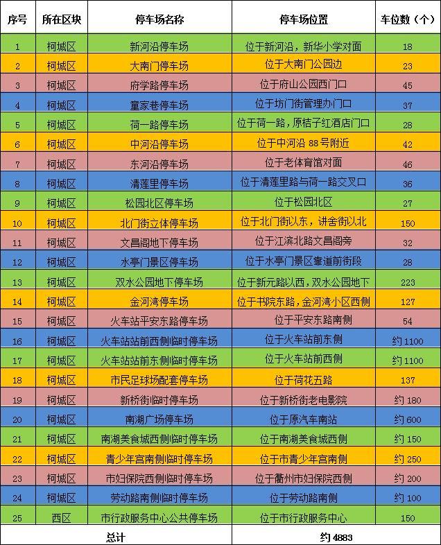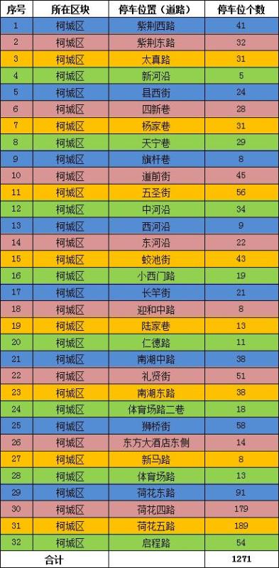 免費(fèi)開放區(qū)域。免費(fèi)開放的停車區(qū)域?yàn)槲夜竟茌牭氖召M(fèi)公共停車泊位6154個(gè)。其中收費(fèi)道路32條,停車泊位1271個(gè);公共停車場25個(gè),停車泊位4883個(gè)。具體信息詳見下圖。