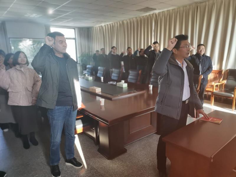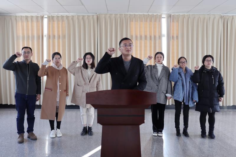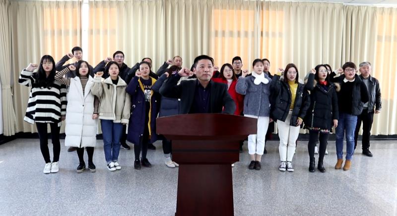 集團副總經(jīng)理葉飛左手按撫《中華人民共和國憲法》,帶領大家舉起右拳,鄭重宣誓。整個過程氛圍莊嚴,宣誓聲鏗鏘有力,充分展示了集團全體干部職工積極向上、奮發(fā)有為的精神面貌。