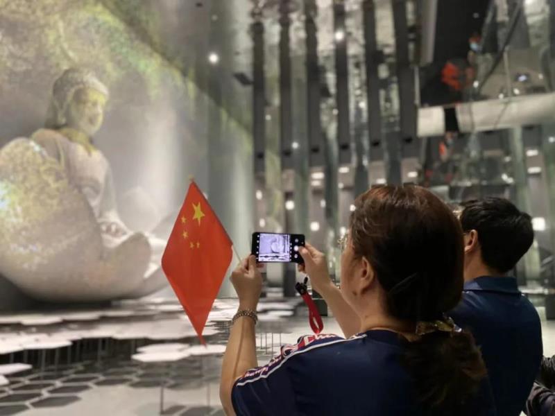 走進(jìn)藝術(shù)館內(nèi),老人們跟隨講解員首先來到了地宮展區(qū),近距離觀看了天王塔遺址,在動(dòng)畫和光影的展示下,老人們對(duì)眼前的景象連連稱贊,并時(shí)不時(shí)地拍照記錄。