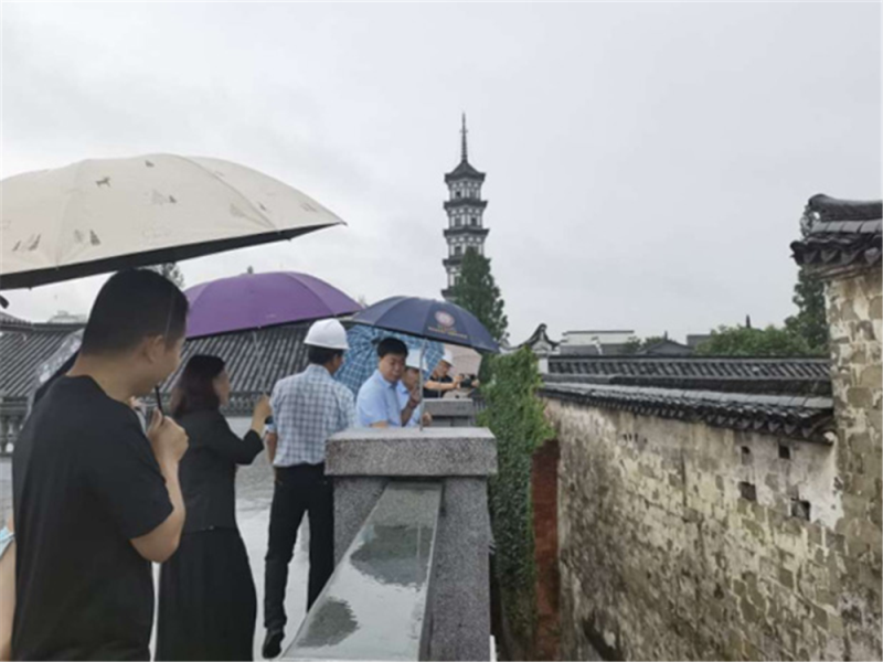 在水亭門歷史文化街區(qū),檢查組對(duì)在建項(xiàng)目、裝修商鋪以及江水上漲后的水亭門外廣場(chǎng)親水平臺(tái)進(jìn)行了逐一檢查。保證項(xiàng)目施工安全,確保裝修臨時(shí)用電雨季安全,加強(qiáng)安保巡邏。