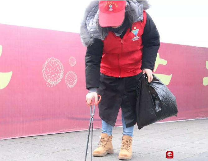 志愿者們手拿塑料袋和垃圾夾,把景區(qū)的邊邊角角掃了個遍,個個干勁十足。