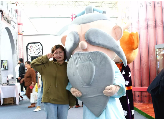 現(xiàn)場,城投集團(tuán)下屬的南孔文化傳播公司的南孔爺爺“吸粉”無數(shù),不時有市民前來合影~