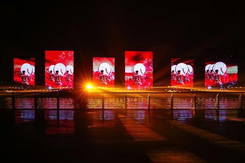 記者在水亭門外的古城墻遺址公園看到,夜色中的信安湖燈火輝煌、波光粼粼,遙相呼應(yīng)的新老衢城,現(xiàn)場再配上光束燈、投光燈、霧森、雨幕水霧噴泉,以及500平方米LED柔性大屏幕和信安湖上218米亞洲第一高的信安湖噴泉,讓人仿佛置身于一場藝術(shù)盛宴。